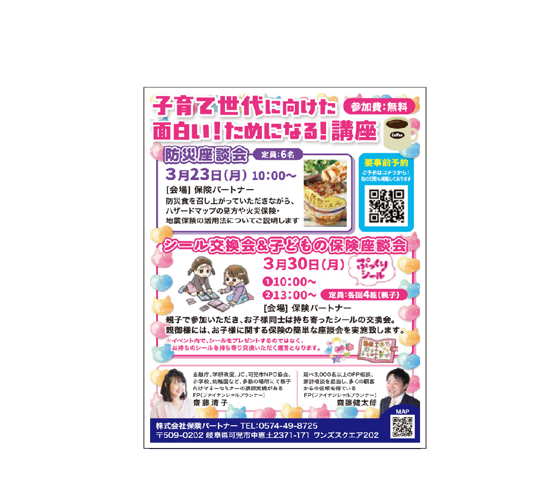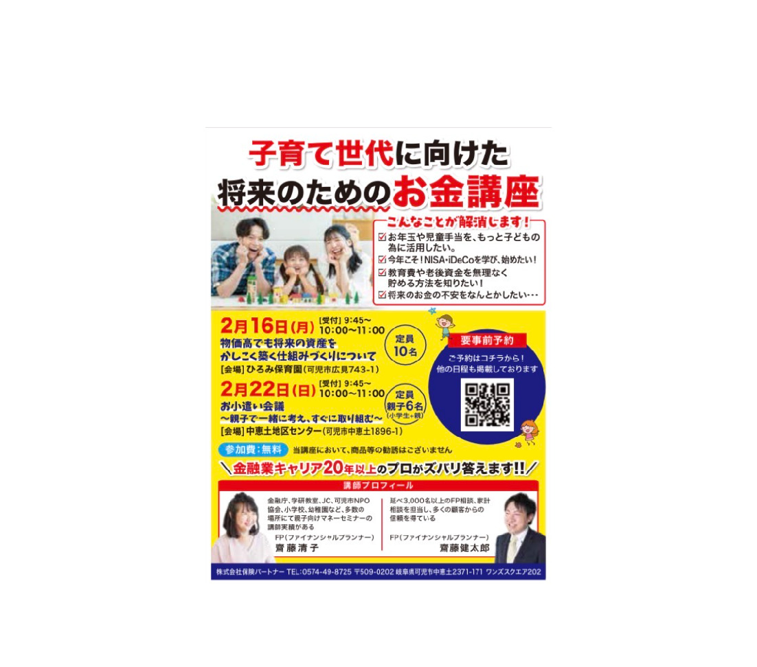 | 【開催場所】 | 保険パートナー 可児市中恵土2371-171 ワンズスクエア202 |